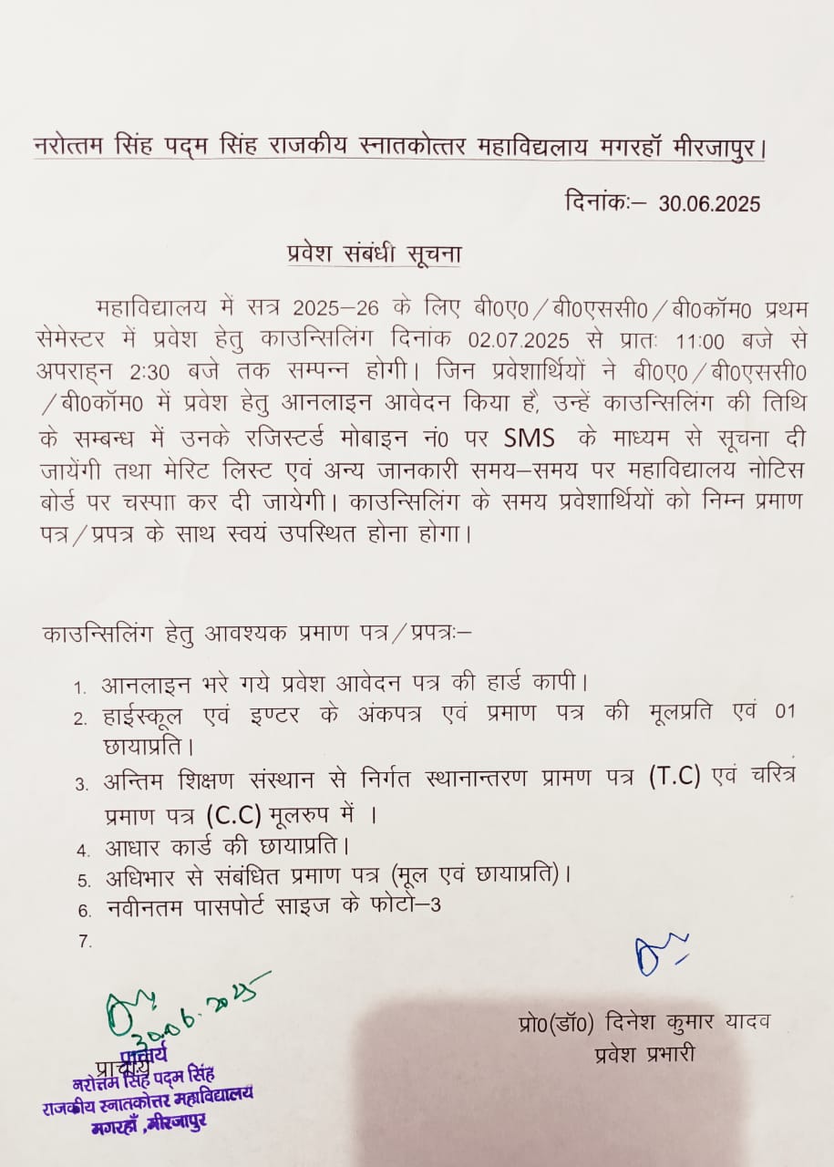 Admission & Counselling Notice 2025-26