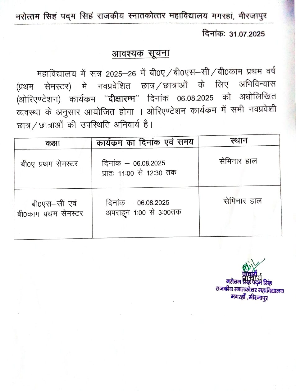 Orientation Program Notice 2025-26